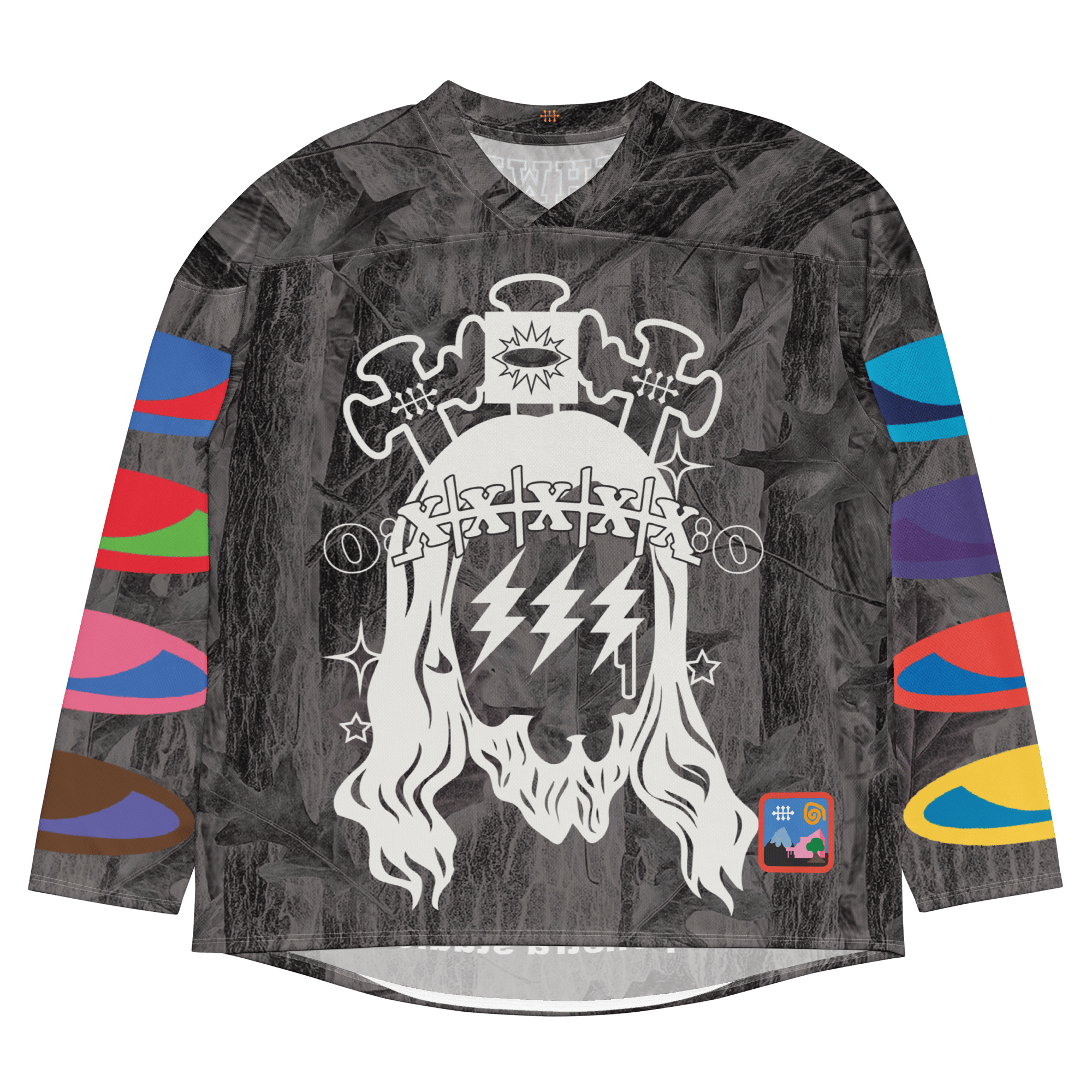 Product: Hockey jersey Color: Ghost tree (camo) Front: Logo (multi) Back: Logo (multi)